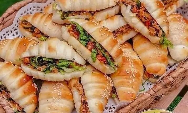 نحشي الكرواسون بالحشو ونضيف خس حسب الرغبة