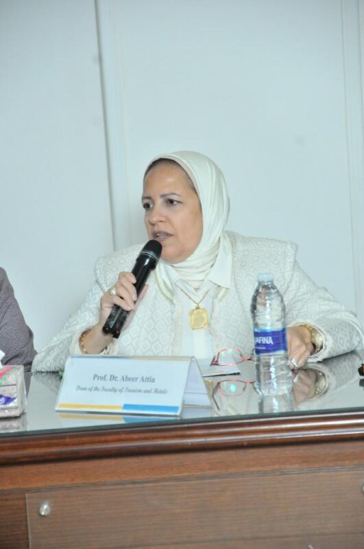 شهد ورشة العمل الدكتورة عبير عطية، عميد كلية السياحة والفنادق، والدكتورة هبة سعد، أستاذ الأثار الإسلامية بكلية السياحة والفنادق ومنظمة ورشة العمل، والدكتور ألبرت فوث، مسئول المشروع بجامعة فيليبس، والدكتور كارسن مايكل، مدير المكتب الإقليمي للهيئة الالمانية للتبادل الثقافي DAAD بالقاهرة، ولفيف من أعضاء هيئة التدريس والطلاب بالكلية.