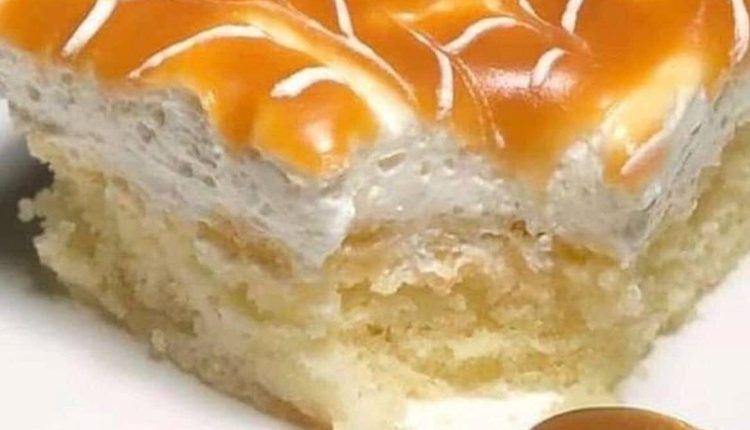 بعد استواء الكيكه نعمل ثقوب فيها ونسقيها بكوب حليب بارد..
