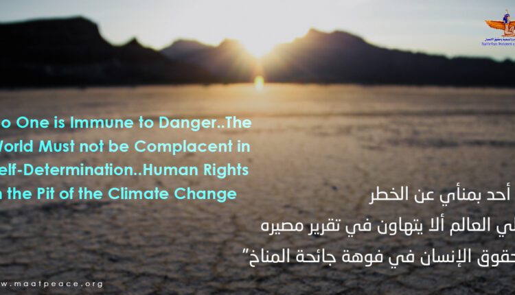 أصدرت مؤسسة ماعت للسلام والتنمية وحقوق الإنسان تقرير بعنوان “لا أحد بمنأى عن الخطر.. على العالم ألا يتهاون في تقرير مصيره.. حقوق الإنسان في فوهة جائحة المناخ”، والذي ركز على الأثر الذي يخلفه تغير المناخ على مجموعة كاملة من حقوق الإنسان الأساسية، كالحق في الحياة، والحق في السكن اللائق، والحق في الحصول على مياه شرب مأمونة، والحق في التنمية، ناهيك عن تأثير تجاوز المستويات الحالية للاحترار العالمي التي اتفق عليها في اتفاق باريس لعام 2015 على أهداف التنمية المستدامة، لاسيما الهدف رقم 13 القاضي باتخاذ إجراءات عاجلة لمكافحة تغير المناخ والحد من آثاره.