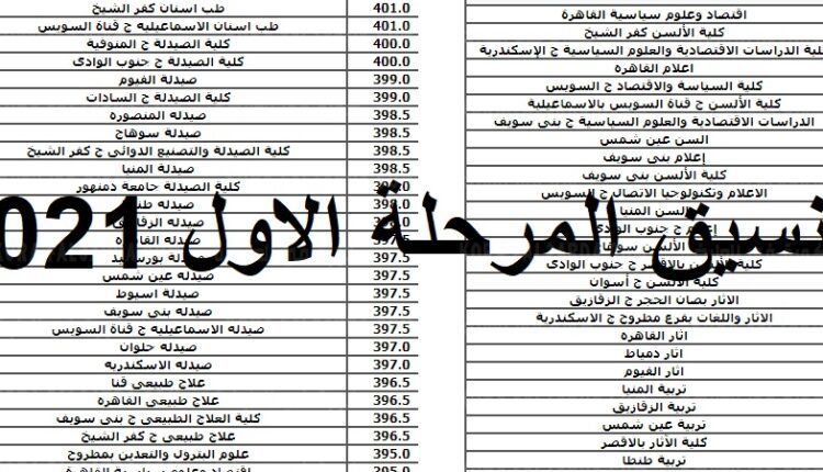 وأعلن الدكتور خالد عبدالغفار، وزير التعليم العالي والبحث العلمي، انطلاق المرحلة الأولى بتنسيق الجامعات 2021، للطلاب الناجحين من الثانوية العامة 2021، بحد أدنى 362.5 درجة فأكثر أي بنسبة 88.41% فأكثر بعدد طلاب 22 ألفا و954 طالبا، لطلاب شعبة علمي علوم والتي تقبل كليات القطاع الطبي (الطب البشري – طب الفم والأسنان – العلاجي الطبيعي – الصيدلة – الطب البيطري)، ولطلاب الشعبة الهندسية 328 درجة فأكثر أي بنسبة 80% فأكثر بعدد طلاب 16 ألفا و293 طالبا، والتي تقبل كليات الهندسة والتخطيط العمراني والحاسبات والمعلومات و269.5 درجة فأكثر أي بنسبة 65.73% فأكثر بعدد طلاب 79 ألفا 33 طالبا كحد أدنى لطلاب الشعبة الأدبية.
