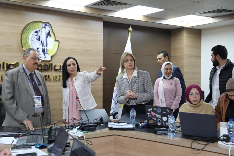 وقامت الدكتورة مايا مرسي والسفير خليل إبراهيم الذوادى بتفقد غرفتى عمليات المجلس، وقدمت شرحاً حول آلية عمل غرف عمليات المجلس خلال أيام الاقتراع.