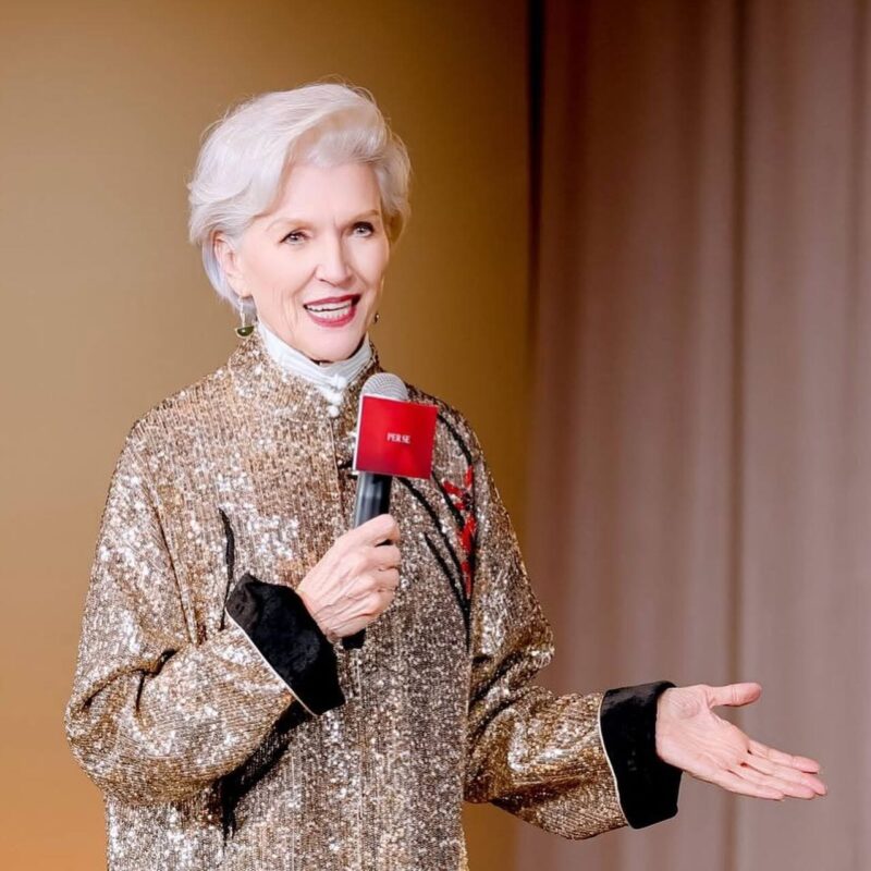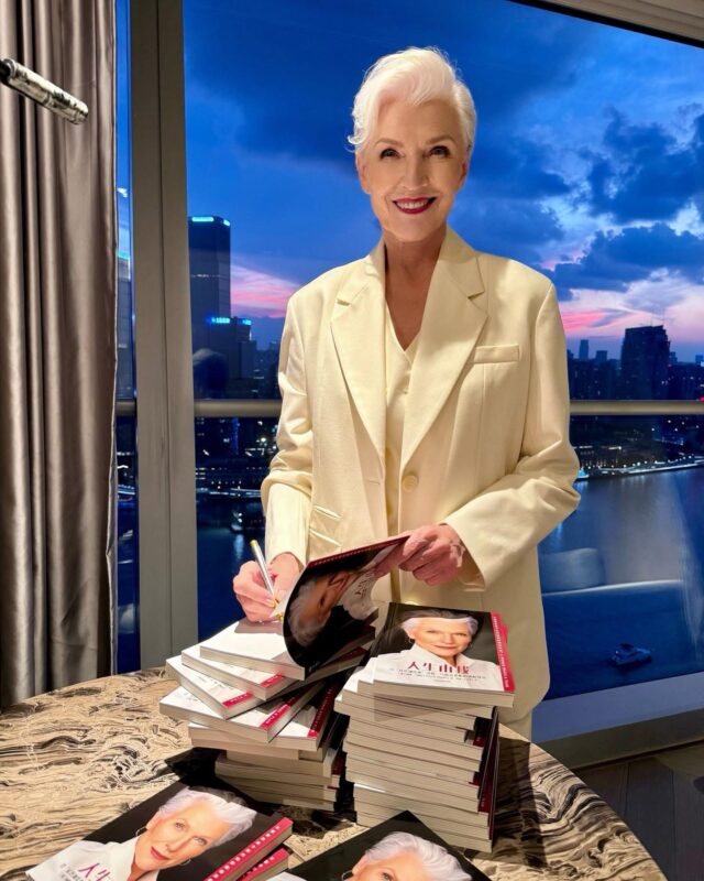 وتستكمل ماي : هل يمكنكِ تخيّل ذلك؟ لم أتخيل ذلك قط لم أكن لأتوقع قط أن سرّ تحول شعري إلى الشيب سيكون سرّ أن أصبح عارضة أزياء مشيت لأول مرة على منصة عرض أزياء في الخامسة عشرة، وأخبروني أنني سأنتهي في الثامنة عشرة كعارضة أزياء، لم أتوقع أبدًا أن أستمرّ في هذا المجال كل هذه المدة – وبالتأكيد ليس في أوج عطائي في الحادية والسبعين. لكن ها أنا ذا، بعد ستة وخمسين عامًا، وما زلتُ في البداية.