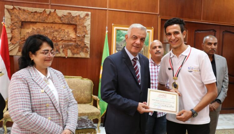 كرم الدكتور عادل مبارك رئيس جامعة المنوفية والدكتورة نانسى أسعد نائب رئيس الجامعة لشئون التعليم والطلاب منتخب الجامعة لكرة القدم لفوزه بكأس مصر للجامعات المصرية فى البطولة التى أقيمت بجامعة الإسكندرية بمشاركة ١٦ جامعة والتى نظمها الاتحاد الرياضى للجامعات بالتعاون مع الإدارة المركزية للتنمية الرياضية بالإداة العامة للاتحادات النوعية والإدارة العامة للنشاط الطلابي بوزارة الشباب والرياضة.