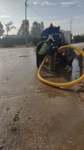 وتم نشر الأوناش المرورية، والشفاطات بالتنسيق مع شركات المياه والصرف الصحي، لسحب المياه المتراكمة بالمحاور، منعا للزحام المرورى خلال أوقات الذروة، مع متابعة حركة السيارات بكافة المحاور مع تكثيف انتشار سيارات الإغاثة والخدمات المرورية اللازمة
