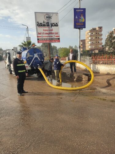 حيث قامت وحدة مرور بسيون بقيادة الرائد محمود ضاهر رئيس وحدة مرور بسيون بنشر افراد الوحدة داخل الشوارع والمحاور المرورية لمتابعة سهولة الحركة اثناء عملية ازالة وشفط مياه الأمطار داخل مركز بسيون