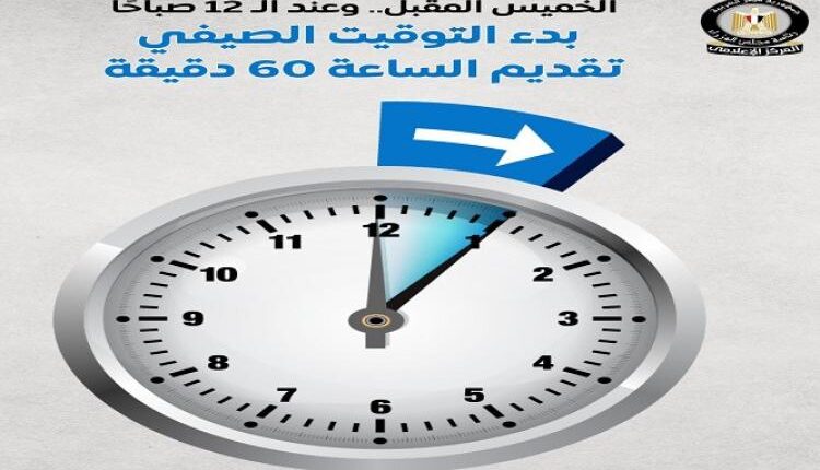 وأضاف أنه ستكون الساعة القانونية في جمهورية مصر العربية هي الساعة بحسب التوقيت المتبع مقدمة بمقدار ستين دقيقة