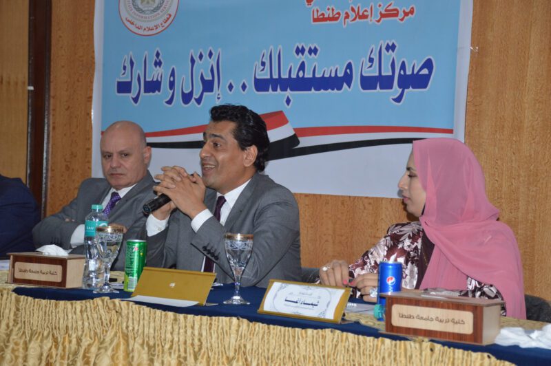 نظم مركز اعلام طنطا بالتعاون مع كلية التربيه جامعة طنطا ندوه بعنوان ” خريطة مصر الجديده والتمكين السياسي للشباب ” حاضر باللقاء الكاتب الصحفى ايمن عبد المجيد رئيس تحرير بوابة روز اليوسف .