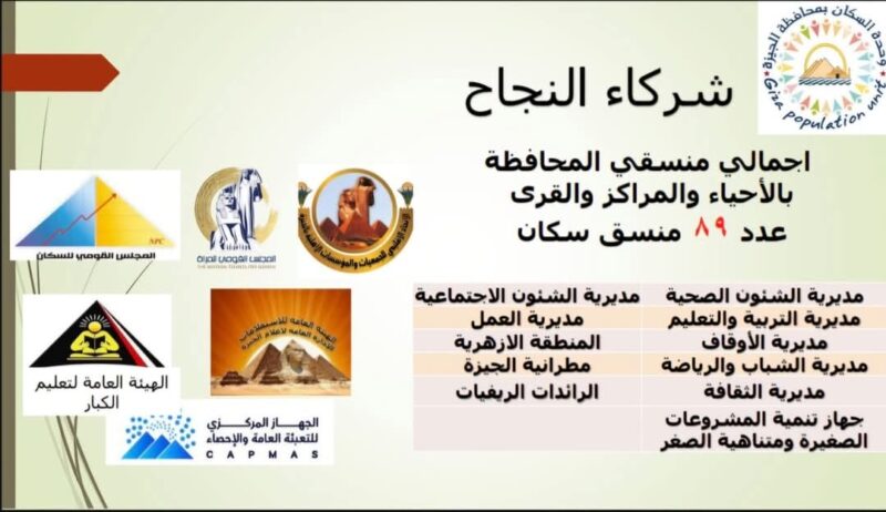 محافظة الجيزة :وحدة السكان نفذت 3872 نشاط إستفاد منه 249 ألف مواطن خلال عام