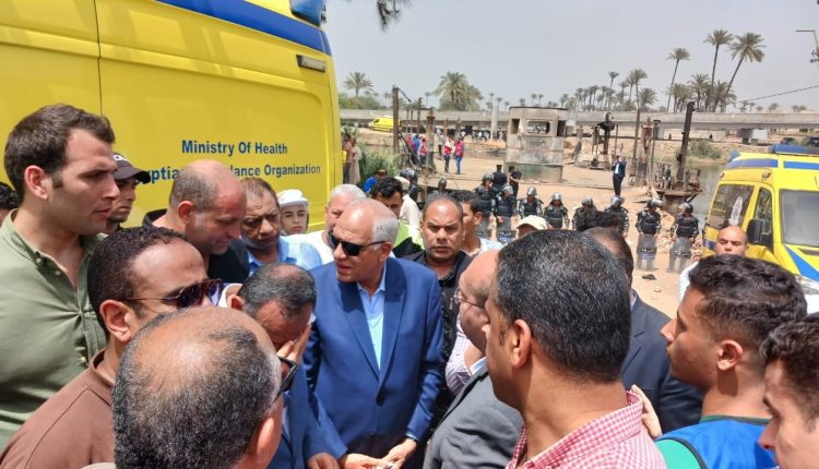 محافظي الجيزة والمنوفية يتفقدان موقع حادث سقوط ميكروباص من علي متن معدية أبو غالب بمنشاة القناطر