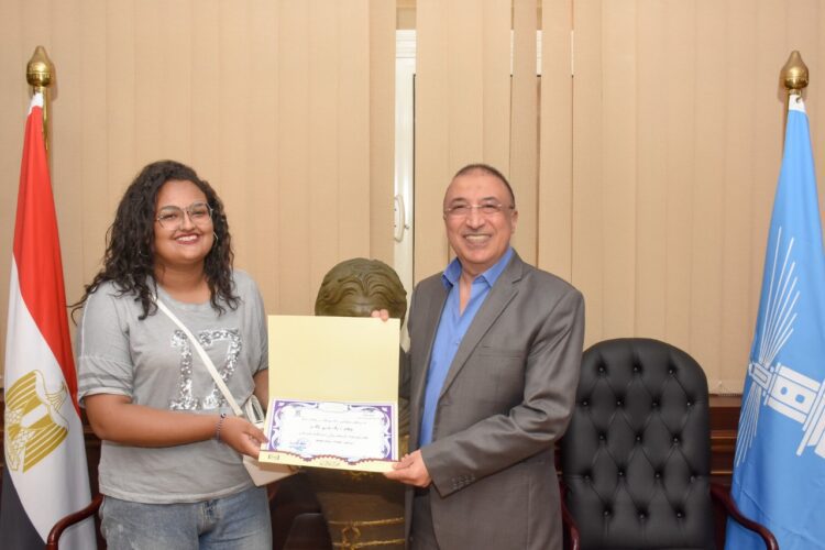 وقدم المحافظ شهادة تقدير من محافظة الإسكندرية لها، مؤكدًا أنها تعد نموذجا ومثالا مشرفاً للمرأة الإسكندرية، وأنها مثال رائع لكل شاب وفتاة.
