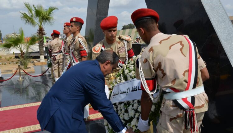 محافظ الإسماعيلية وقائد الجيش الثاني الميداني يضعان إكليلًا من الزهور على النصبِ التذكاريِّ للشهداء