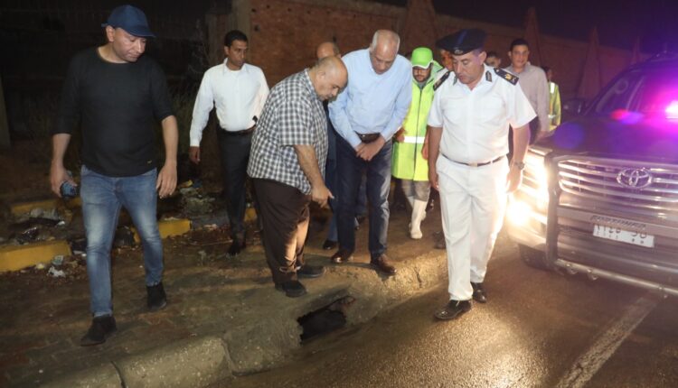 محافظ الجيزة يتفقد مجهودات شفط مياه الامطار بالطريق الدائري وأحياء العمرانية