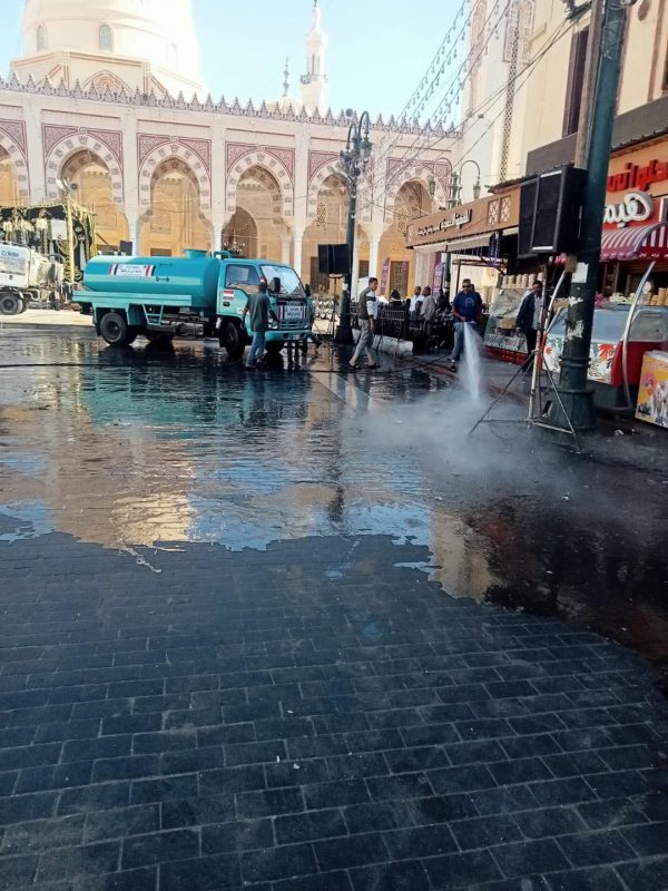 وأكد محافظ الغربية أن الأجهزة التنفيذية بحي أول طنطا واصلت منذ الساعات الأولى من صباح اليوم تنفيذ خطة مكثفة لرفع المخلفات الناتجة عن الاحتفالات وإزالة الإشغالات والخيام والعربات المؤقتة بمحيط المسجد الأحمدي والشوارع المؤدية إليه، مشيرًا إلى أن الحملات شملت رفع تراكمات القمامة، إلى جانب أعمال الغسيل والرش والتطهير بالمياه المخلوطة بالكلور والصابون، بالتنسيق مع مديرية الصحة والطب البيطري وهيئة النظافة، بما يضمن الحفاظ على المظهر الجمالي والبيئي للمنطقة بعد مغادرة الزائرين.