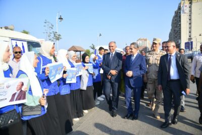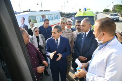 وتفقد المحافظ اصطفاف السيارات الطبية والمركبات المُشاركة بالمبادرة، من العيادات الطبية المتنقلة وسيارات الإسعاف والسيارات الخاصة بتنفيذ القوافل العلاجية ، وذلك بمنطقة كورنيش طنطا، واستمع لشرح تفصيلي من وكيل الوزارة عن المبادرة والتي يشارك فيها جميع قطاعات الصحة في محافظة الغربية، من خلال ما يقرب من ١٦٥ فريق من فرق المبادرات الرئاسية (المتحركة والثابتة) وتقدم خدمات ” فحص صحة المرأة – والأمراض المزمنة والاعتلال الكلوي، الأم والجنين، السمعيات، التقزم والأنيميا، كبار السن، قلبك أمانة”، كما يصاحب عمل فرق المبادرات نشاط مكثف لفرق التواصل المجتمعي والتثقيف الصحي، بالإضافة إلى زيادة عدد القوافل الطبية من أجل استهداف أكبر عدد ممكن من القرى المحرومة من الخدمات.