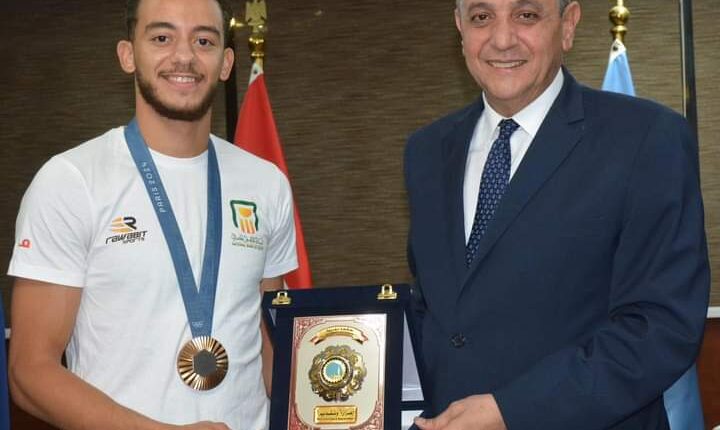 وكرم محافظ الغربية البطل مهديا له شهادة تقدير ودرع المحافظة تكريماً لمجهوده الذي بذله والذي تكلل بتحقيق اول ميدالية برونزية للبعثة المصرية في اولمبياد باريس، بعد هزيمته المجري تيبور أندراسفي بنتيجة 8-7 في لعبة سلاح سيف المبارزة.