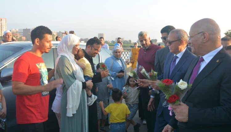 محافظ القليوبية يفدم الورود للمواطنين بعد أداء صلاة عيد الأضحي المبارك