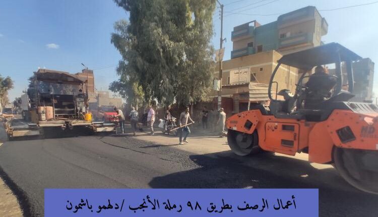 تابع اللواء إبراهيم أبو ليمون محافظ المنوفية أعمال الرصف بطريق 98 الحربي رملة الأنجب/دلهمو بمركز ومدينة أشمون ، حيث جارى أعمال وضع الطبقة الاسفلتية النهائية بالطريق بداية من قرية دلهمو وحتي قرية لبيشة مروراً بقرية طهواي ومؤنسة والإنجب ورملة الإنجب بإجمالى أطوال 13 كم ، تنفيذ الهيئة العامة للطرق والكباري وذلك ضمن المبادرة الرئاسية ” حياة كريمة ” .