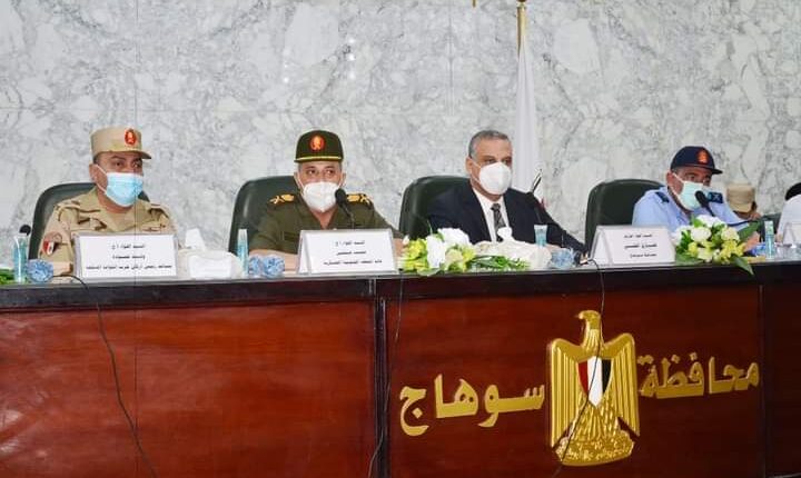 استقبل اللواء طارق الفقي محافظ سوهاج، اليوم، اللواء أ.ح محب حبشي قائد المنطقة الجنوبية العسكرية، واللواء بحري أ.ح طارق عدلي، واللواء أ.ح وليد حمودة مساعدي رئيس أركان حرب القوات المسلحة، خلال زيارتهم للمحافظة لبحث ومتابعة الموقف التنفيذي للمشروعات المدرجة ضمن خطة المشروع القومي لتطوير الريف المصري “حياة كريمة” بسوهاج، والعمل على إزالة أية معوقات، بحضور السيد أحمد سامي القاضي نائب محافظ سوهاج، واللواء أحمد الشمندي مساعد مدير أمن سوهاج.