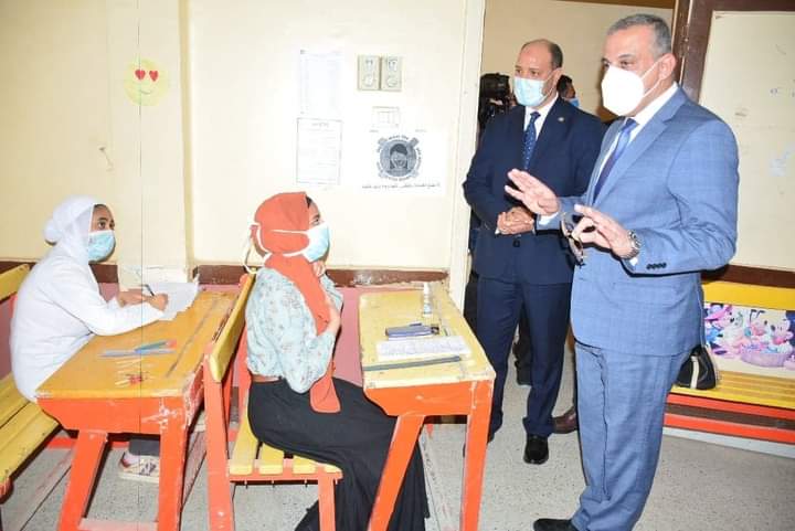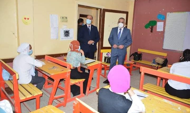 واطمأن المحافظ خلال المتابعة على تطبيق كافة الإجراءات الاحترازية لمكافحة فيروس كورونا وتحقيق التباعد بين الطلاب والالتزام بارتداء الكمامات واجراء أعمال تطهير وتعقيم اللجان.