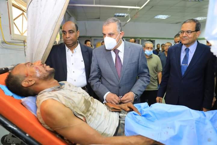 رافق المحافظ خلال تفقد المصابين الدكتور مصطفى عبد الخالق رئيس جامعة سوهاج، والسيد أحمد سامي القاضي نائب المحافظ، والدكتور مجدي القاضي عميد كلية الطب، والدكتور حمدي سعد مدير المستشفى الجامعي بسوهاج
