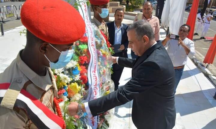 وبدأت المراسم بوضع إكليل الزهور على النصب التذكاري للشهداء ثم عزفت موسيقى الشرطة “سلام الشهيد”، أعقبها قراءة الفاتحة على أرواح شهداء مصر وفاءً لهم وعرفانًا بما قدموه للوطن من بطولات وتضحيات دفاعاً عن سلامة الوطن والشعب المصري العظيم، ثم قام محافظ الإقليم ومدير الأمن والمستشار العسكرى بتحية الحضور من القيادات الامنية والتنفيذية والدينية، وممثلي المرأة والشباب، وذوي الإعاقة، والشخصيات العامة من الحضور وتقديم التهنئة لهم بمناسبة ذكرى انتصارات أكتوبر المجيدة.