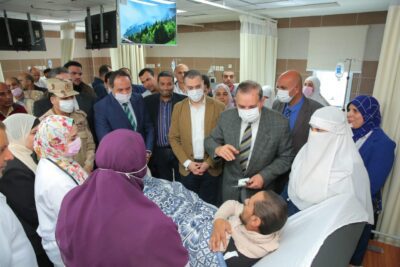 تفقد المحافظ قسم الغسيل الكلوى الجديد للاطلاع على سير العمل والاطمئنان على مستوى الرعاية الطبية المقدمة للمرضي وتابع قسم الاستقبال والعناية وعيادات الباطنة العامة والقلب والأطفال والأنف والأذن والحنجرة وغيرها من أقسام وعيادات المستشفي وبنك الدم والصيدلية.