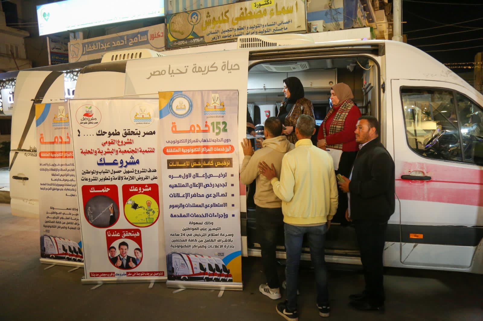 أضاف محافظ كفرالشيخ، أنه يتم تقديم حزمة متكاملة من الخدمات الحكومية من خلال سيارة المركز التكنولوجي المتنقل، إلى جانب خدمات جهاز تنمية المشروعات المتوسطة والصغيرة ومتناهية الصغر، ومبادرة «مشروعك»، فضلًا عن إرشاد المواطنين إلى آليات التمويل والقروض الميسرة للمشروعات الصغيرة، بما يسهم في دعم الشباب، وتشجيع ثقافة العمل الحر، وتيسير الإجراءات أمام الراغبين في إقامة مشروعات منتجة.