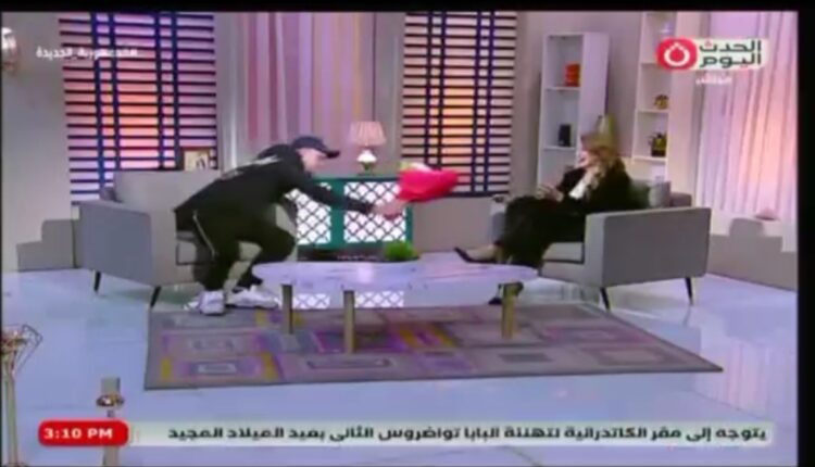 واحتفل محمود حجاج مع الإعلامية مادلين طبر بالعام الجديد واهدائها بوكية من الورد علي الهواء في بداية اللقاء وتفاجأت وعبرت عن سعادتها بذلك..