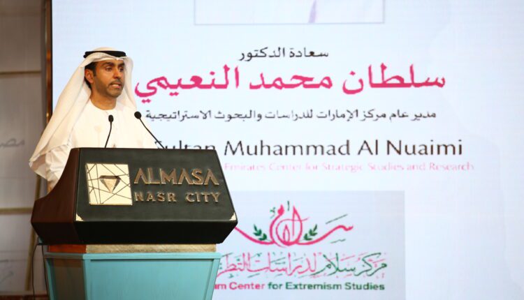 وتابع: “إن دولة الإمارات قد أدركت خطورة ظاهرة التطرف والفكر التكفيري مبكرًا وما يحدث من أعمال عنف، مشددًا على ضرورة تشكيل البيئة العالمية لمواجهة الإرهاب، فالإمارات ما زالت يدًا بيد مع مصر في مواجهة الإرهاب والقضاء عليه وإنضاب بؤره للوصول إلى التنمية والتسامح، والمواجهة لا بدَّ أن تبدأ بالنشء والولوج إلى الوسائل الإعلامية لتصحيح الخطاب الموجَّه والداعم للخطاب المتطرف”.