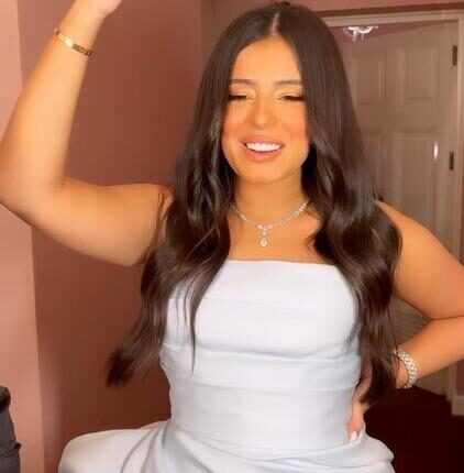 ولفتت ابنة عامر منيب الأنظار في حفل خطوبتها بإطلالتها ,فكانت تردى فستانا بأكمام مكشوفة وطويل من الخلف وقصير للغاية من الأمام ,حذاءً أنيقا بكعب عالٍ، فيما تزينت ببعض المجوهرات البسيطة للغاية
