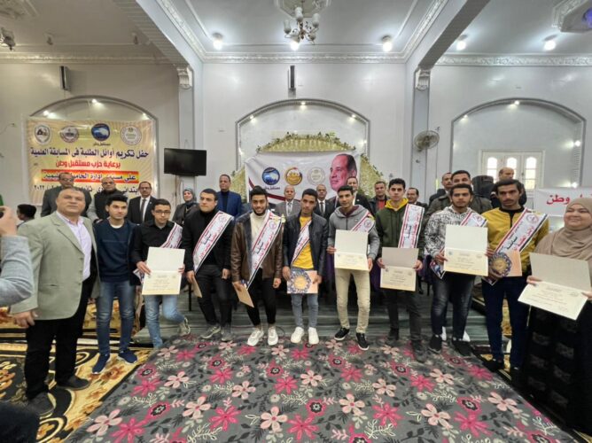 كرمت أمانة حزب مستقبل وطن بمحافظة كفرالشيخ أوائل الطلبة بالمدارس الفائزة بمركز الحامول فى المسابقة المقامة برعاية حزب مستقبل وطن واشراف مديرية التربية والتعليم بكفرالشيخ