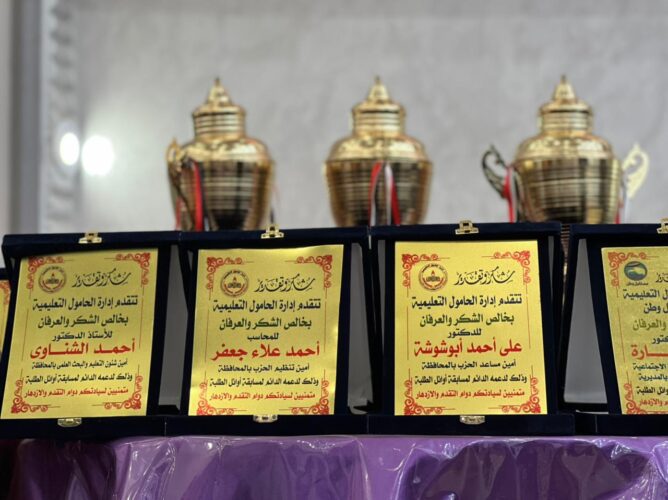 من جانبه أوضح المحاسب احمدعلاء جعفر امين التنظيم بالمحافظة أنه تم تكريم 50 من أوائل الطلبة بالمدارس الفائزة بمركز الحامول وهي مدارس ناصر للتعليم الأساسي والأبعادية للتعليم الأساسي ومدرسة الحامول الثانوية كما تم تكريم مدرسة الزعفران الاعدادية لتقديم فقرات فنية متميزة خلال الحفل كما تم تقديم كاسات للمراحل المؤهلة للمحافظة وشهادات تقدير للمشرفين والموجهين وتم تكريم قيادات الحزب و قيادات التربية والتعليم بالحامول