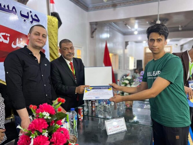قال المحاسب أحمد علاء جعفر أنه تم تكريم 91 من حفظة القرآن الكريم وأوائل الثانوية العامة والازهرية، وتم منحهم جوائز وشهادات تقدير ، لتفوقهم فى حفظ كتاب الله والتفوق الدراسي ، مؤكدا أن حزب مستقبل وطن يسعى دائما لتكريم المتفوقين فى جميع المجالات باعتبارهم رموزا للعمل الجاد ومن حقهم أن نفخر بهم ونكرمهم مؤكدا أن من يجتهد فى عمله لايفيد نفسه فقط بل يسهم فى تقدم الوطن ويرفع اسم مصر عاليا فى مجاله مقدما الشكر لأولياء الأمور لتوفير الجو المناسب لأبنائهم لحفظ القرآن الكريم والتفوق الدراسي.