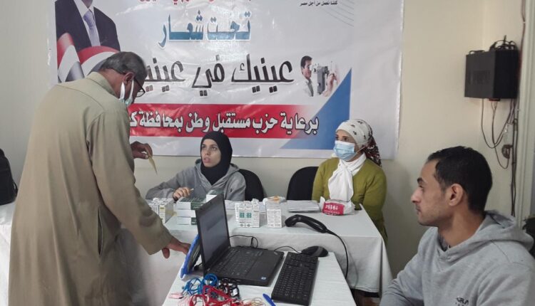 نظمت أمانة حزب مستقبل وطن بمحافظة كفرالشيخ قافلة طبية لمرضى العيون بالتنسيق مع مستشفى المغربى للعيون بحضور نخبة من أفضل الأطباء المتخصصين فى امراض العيون برعاية المهندس عزالدين جودة عضو مجلس الشيوخ