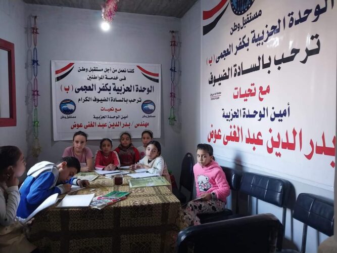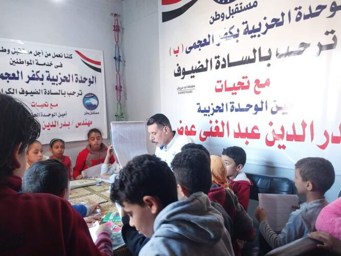 أشار باسم السمنودي أمين التنظيم بمركز بيلا إلى أنه تم التنسيق مع نخبة من المعلمين المتميزين من أبناء مركز بيلا لتقديم خدمات تعليمية مجانية سواء تنظيم مجموعات تقوية بمدينة بيلا لطلبة الثانوية العامة الذين بلغوا 900 طالب فى اسبوعين أو تنظيم قوافل تعليمية للقرى وبدأنا بقرية كفرالعجمي لطلاب المرحلة الإعدادية وأبدى الطلاب والأهالى سعادتهم البالغة بالقافلة وطالبوا بتكرارها وذلك بإشراف بدر الدين عبدالغنى عوض أمين الوحدة الحزبية بكفرالعجمي