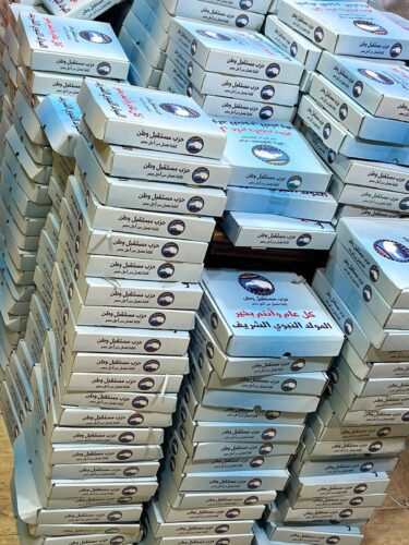 وزعت أمانة حزب مستقبل وطن بمركز الحامول فى محافظة كفرالشيخ ، 600 علبة حلوى بقرى المركز والمدينة ، بمناسبة الاحتفال بذكرى المولد النبوي الشريف وذلك انطلاقا من الدور المجتمعي لحزب مستقبل وطن تحت رعاية المستشار عبدالوهاب عبدالرازق ، رئيس الحزب وتنفيذا لتوجيهات المهندس أشرف رشاد الشريف الأمين العام والنائب الأول لرئيس الحزب ، والمهندس فوزى الرفاعي أمين الحزب بالمحافظة