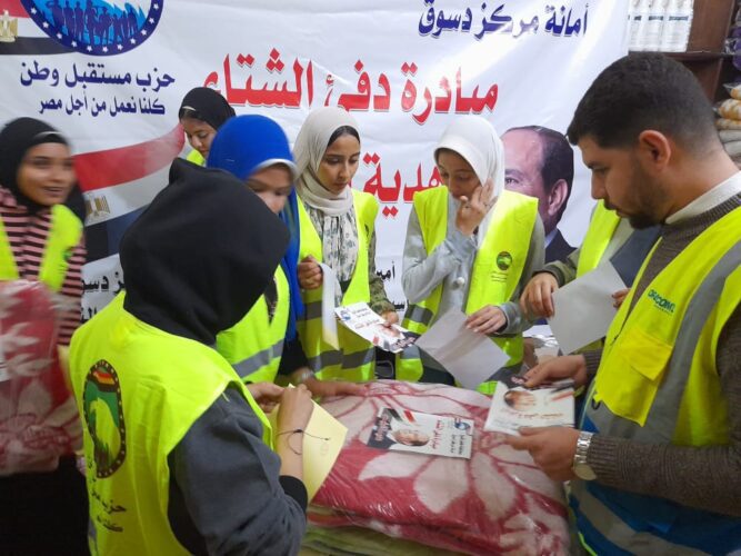 وزعت أمانة حزب مستقبل وطن بمركز دسوق بمحافظة كفرالشيخ 150بطانية على المواطنين بقرى مركز دسوق ضمن مبادرة شتاء دافىء وذلك انطلاقا من الدور المجتمعي لحزب مستقبل وطن تحت رعاية المستشار عبدالوهاب عبدالرازق رئيس الحزب وتنفيذا لتوجيهات المهندس أشرف رشاد الشريف الأمين العام والنائب الأول لرئيس الحزب والمهندس فوزى الرفاعي أمين الحزب بالمحافظة
