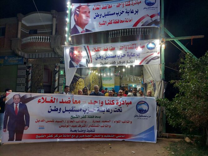 نظمت أمانة حزب مستقبل وطن بمحافظة كفرالشيخ معرضا للسلع الغذائية المخفضة بقرية شنو مركز كفرالشيخ بمناسبة شهر رمضان المبارك وذلك انطلاقا من الدور المجتمعي لحزب مستقبل وطن تحت رعاية المستشار عبدالوهاب عبدالرازق رئيس الحزب وتنفيذا لتوجيهات المهندس أشرف رشاد الشريف الأمين العام والنائب الأول لرئيس الحزب والمهندس فوزى الرفاعى أمين الحزب بالمحافظة