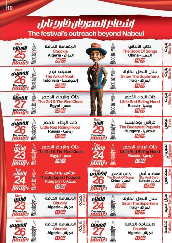 لتمثيل مصر في مهرجان نيابوليس الدولي لمسرح الطفل في دورته رقم ٣٧ و يقام المهرجان خلال الفترة من ٢٢ إلى ٢٩ ديسمبر بدولة تونس وتنافس المسرحية المصرية مع العديد من العروض من دول مختلفة ومنها أسبانيا، فرنسا، بلجيكا، روسيا، هنغاريا، الصين، إندونيسيا، ومن الدول العربية المغرب، الجزائر، العراق، البحرين، يذكر أن المسرحية من إنتاج وزارة الثقافة ممثلة في مسرح القاهرة للعرائس، التابع للبيت الفني للمسرح، تأليف وأشعار السيناريست وليد كمال، وإخراج نادية الشويخ، بطولة صوتية لصاحبة السعادة إسعاد يونس، والفنانة القديرة هالة فاخر، والنجمة الشابة مايان السيد، والفنان القدير سامي مغاوري، والفنانين عمرو رمزي، تامر فرج، عصام الشويخ، أشرف طلبة، ألحان وتوزيع الموسيقار هاني شنوده.
