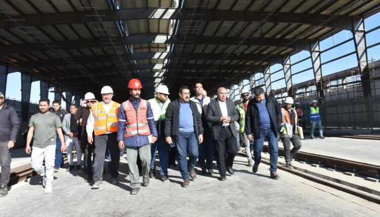 كما تم تفقد ورشة القطار السريع المقامة على مساحة 338ألف متر مسطح الجاري الانتهاء من تنفيذها والتى تشمل 7 تراكات خاصة بالقطارات و5 مباني فنية والتي سيتم بها تخزين القطارات وتنفيذ أعمال الصيانة الخفيفة لها.