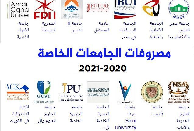 واعلنت عدد من الجامعات الخاصة في مصر عن مصاريف كلياتها للعام الدراسي الجديد 2020-2021، لطلاب شهادة الثانوية العامة وما يعادلها من الشهادات الاخري للعام الدراسي الجديد.