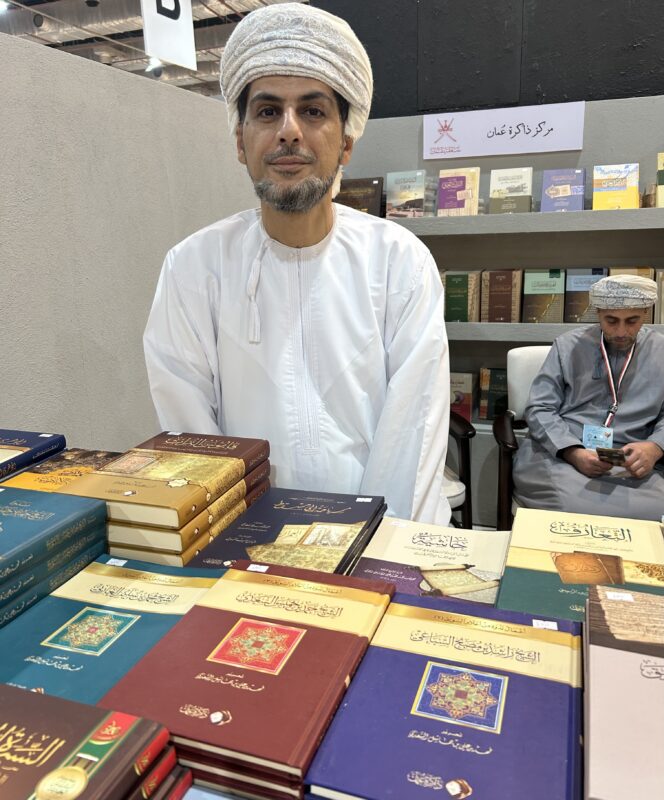 لنختتم جولتنا ضمن جناح سلطنة عمان في معرض القاهرة الدولي للكتاب – الدورة 56 لنختتم مع الأستاذ خالد المويتي وركن دار الكلمة الطيبة.