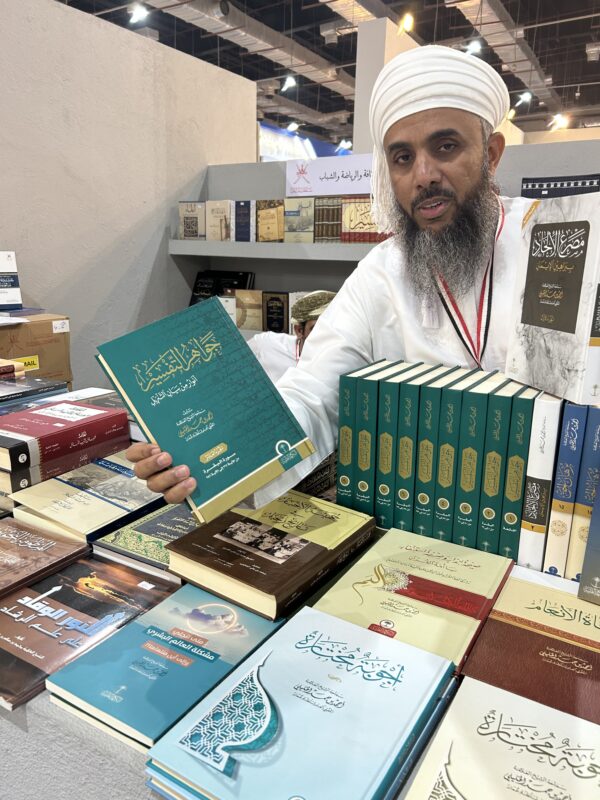 لنختتم جولتنا ضمن جناح سلطنة عمان في معرض القاهرة الدولي للكتاب – الدورة 56 لنختتم مع الأستاذ خالد المويتي وركن دار الكلمة الطيبة.
