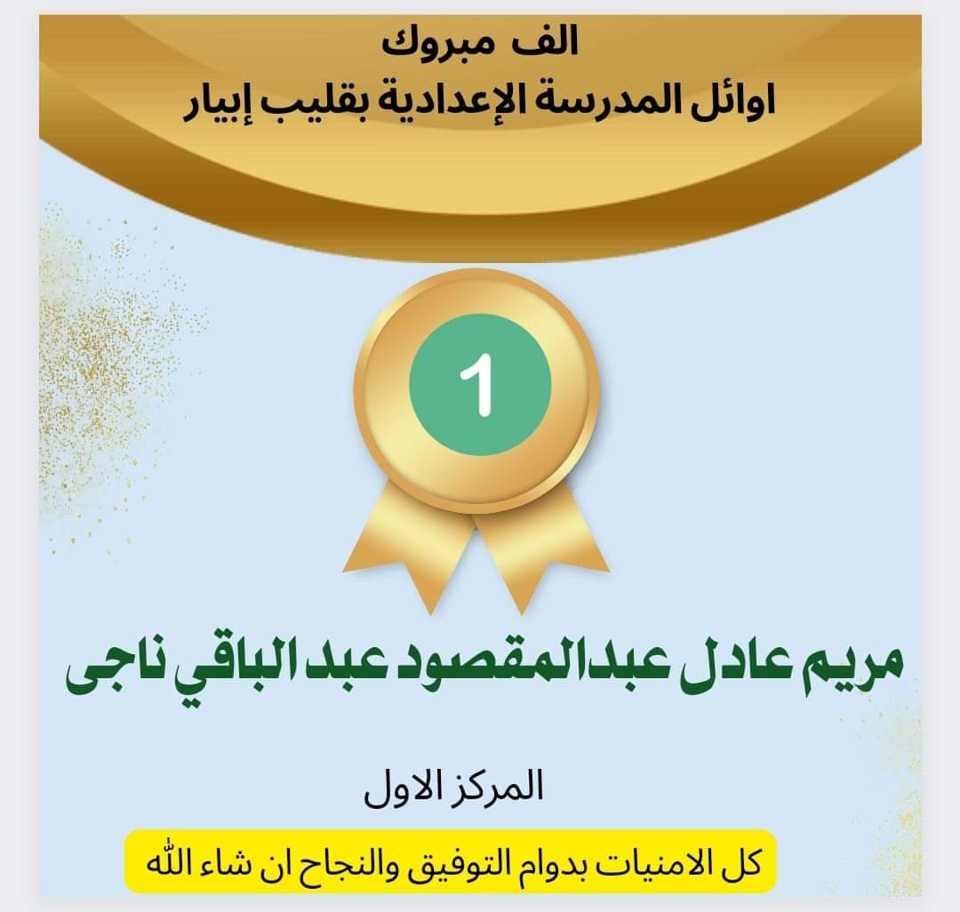 تقدم مجلس ادارة وكالة مصر البلد الاخبارية “بارق التهانى للرائد عادل عبدالمقصود رئيس وحدة مرافق بسيون بنجاح كريمتة الانسة مريم عادل عبدالمقصود على المركز الاولى على بالشهادة الاعدادية بمدرسة قليب ابيار بادارة كفر الزيات التعليمية