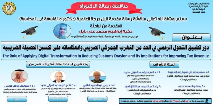 تتقدم جريدة مصر البلد الإخبارية بخالص التهاني والتبريكات للدكتورة زكية إبراهيم محمد نايل المدرس المساعد بكلية التجارة جامعة الأزهر، لحصولها علي الدكتوراة بدرجة امتياز لحصولها على درجة الدكتوراة فى فلسفة المحاسبة،بتقدير إمتياز