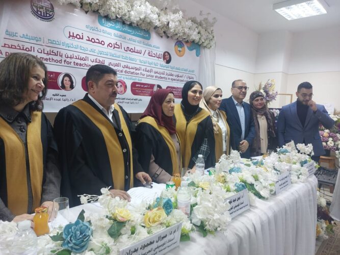 كما تتقدم بأصدق التهاني الي ا. د أكرم نمير وكيل كليه التربيه النوعيه لشؤن البيئه وخدمه المجتمع..وا.د . دينا المحلاوي ..رئيس قسم التربية الموسيقية بالكلية علي حصول نجلتهما د. سلمي اكرم علي درجه الدكتوراه بامتياز.
