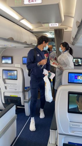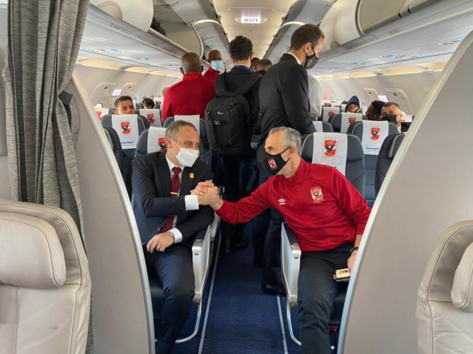 وحرصت مصر للطيران علي استقبال أعضاء بعثة النادي الأهلي علي متن الطائرة بالورود والشوكولاتة التي تحمل شعار مصرللطيران والمارد الأحمر ، كما قدم أفراد الطاقم التهنئة للفريق عبر النداء الصوتي للطائرة علي هذا الإنجاز الرياضي الجديد .