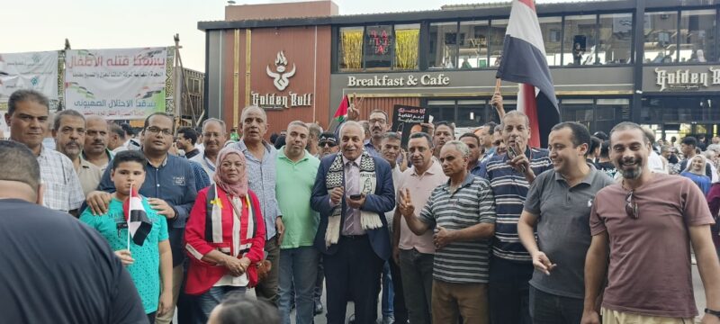وردد العاملين بمديرية الزراعة والإدارات الزراعية والتعاونية التابعة لها بمراكز المحافظة هتافات مناهضة للكيان الصهيونى، وما يقومون به من مجازر ضد المدنيين الأبرياء والأطفال وخاصة بعد ضرب المستشفى بغزة ، وتم تفوض الرئيس السيسى فى اتخاذ جميع الإجراءات اللازمة للحفاظ على الأمن القومى المصرى ، والحفاظ على الحقوق الفلسطينية ، وطالب الحضور المجتمع الدولى بالتدخل الفورى، لإيقاف الاعتداء الغاشم على الشعب الفلسطينى ، وتم رفع علم فلسطين ، وأعلام جمهورية مصر العربية وصور الرئيس عبد الفتاح السيسي.