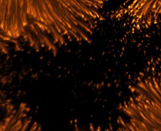 تُعرف هذه باسم “نقاط الظل” – كرات من البلازما المتوهجة ترتفع وتهبط في القلب المظلم للبقع الشمسية.